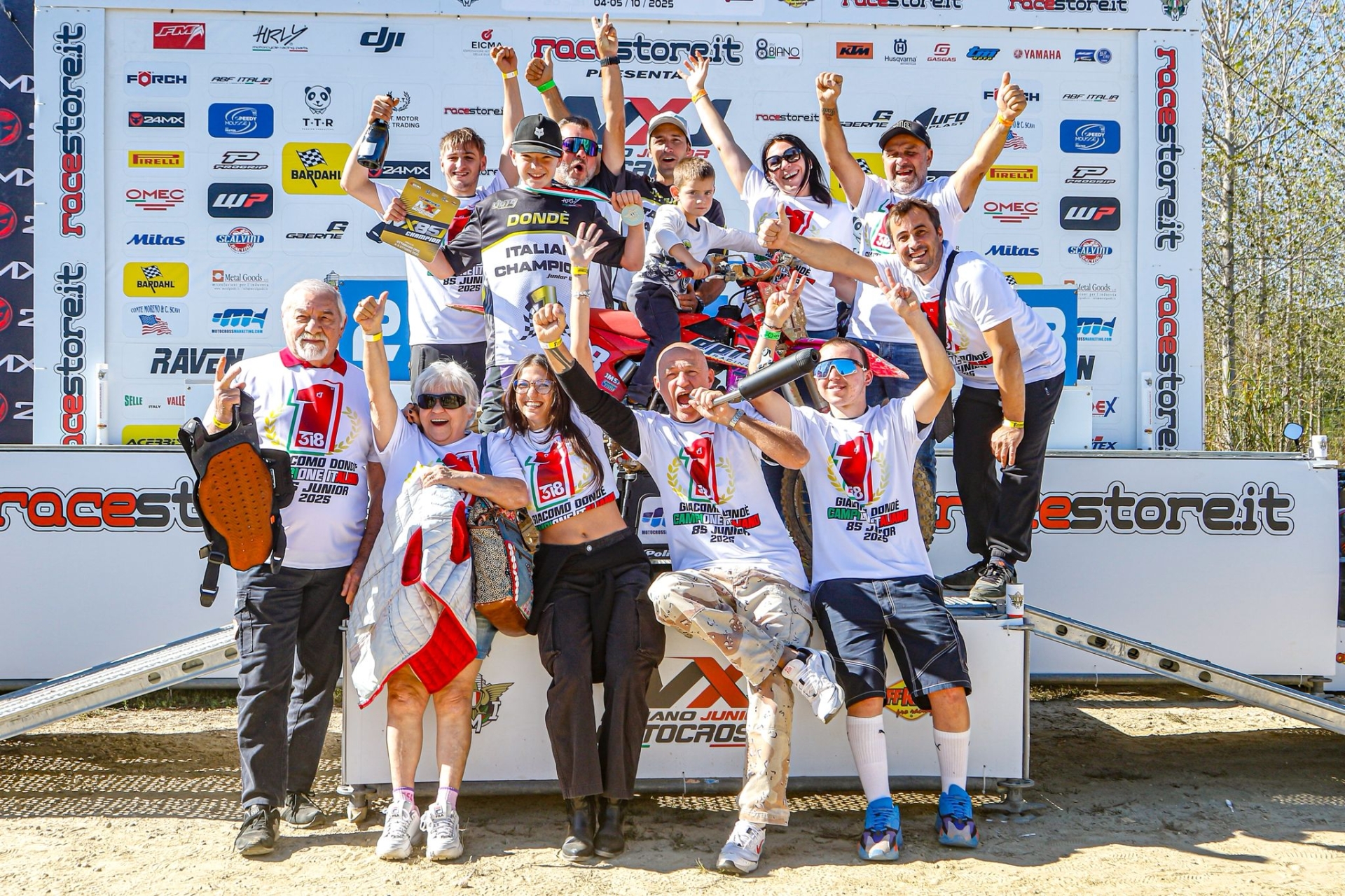 Dopo il quarto tempo fatto realizzare nelle prove cronometrate, in gara1 Dondè rimedia a una partenza sbagliata e, conducendo molto bene il mezzo, chiude al terzo posto, risultato che gli permette di incrementare ulteriormente il vantaggio nella generale. Anche in gara2 la partenza non è delle migliori, ma anche qui chiude in terza posizione, tenendo tutto sotto controllo. Nonostante due terzi posti, a fine giornata non sale sul podio (quarto), ma poco importa, visto che l'obiettivo era conquistare il titolo italiano che fa seguito a quelli di Minienduro e di Coppa Debuttanti 65cc vinti nel 2022 ed a quello di supercross 65cc Cadetti conquistato nel 2023. L'anno scorso, invece, Dondè aveva fatto apprendistato nella categoria 85cc con piloti tutti più grandi di lui, classificandosi comunque terzo.