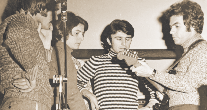 Mario Tessuto (a destra) con il suo complesso negli anni Sessanta e Settanta. Il secondo da sinistra è il mortarese Maurizio Grossi, anche lui recentemente scomparso
