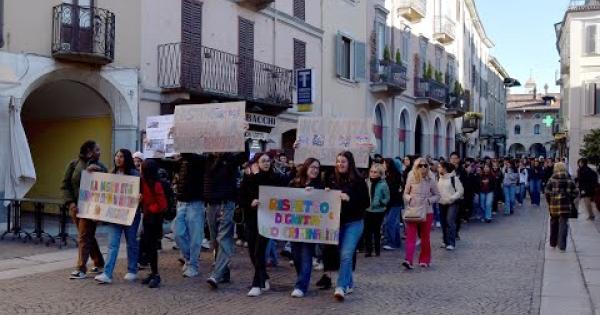Circa 200 ragazzi hanno partecipato al corteo per chiedere «maggiore sicurezza in città», organizzato dalle tre scuole superiori pubbliche di Vigevano (Cairoli, Casale, Caramuel-Roncalli) stamattina. Alle 9 erano già sotto il municipio di Vigevano, dove sono stati svariati minuti con striscioni e slogan urlati. Nessun problema di disordine: solo la voglia di essere ascoltati. Marzia Segù, sindaca facente funzione, e il comandante della polizia locale Giuseppe Calcaterra hanno poi ricevuto una delegazione di sei ragazzi all'interno del palazzo comunale per lanciare proposte e confrontarsi.