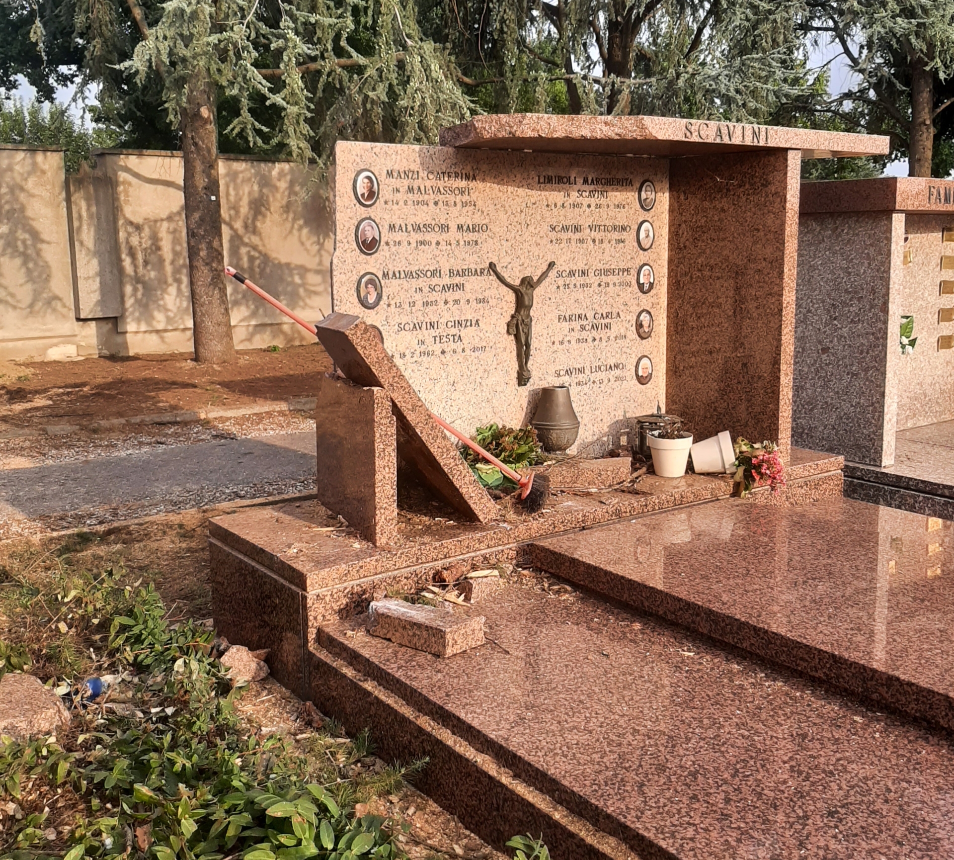 La tomba di famiglia del signor Giuseppe Testa danneggiata dalla "tempesta perfetta” abbattutasi sulla nostra città a fine agosto di due anni fa