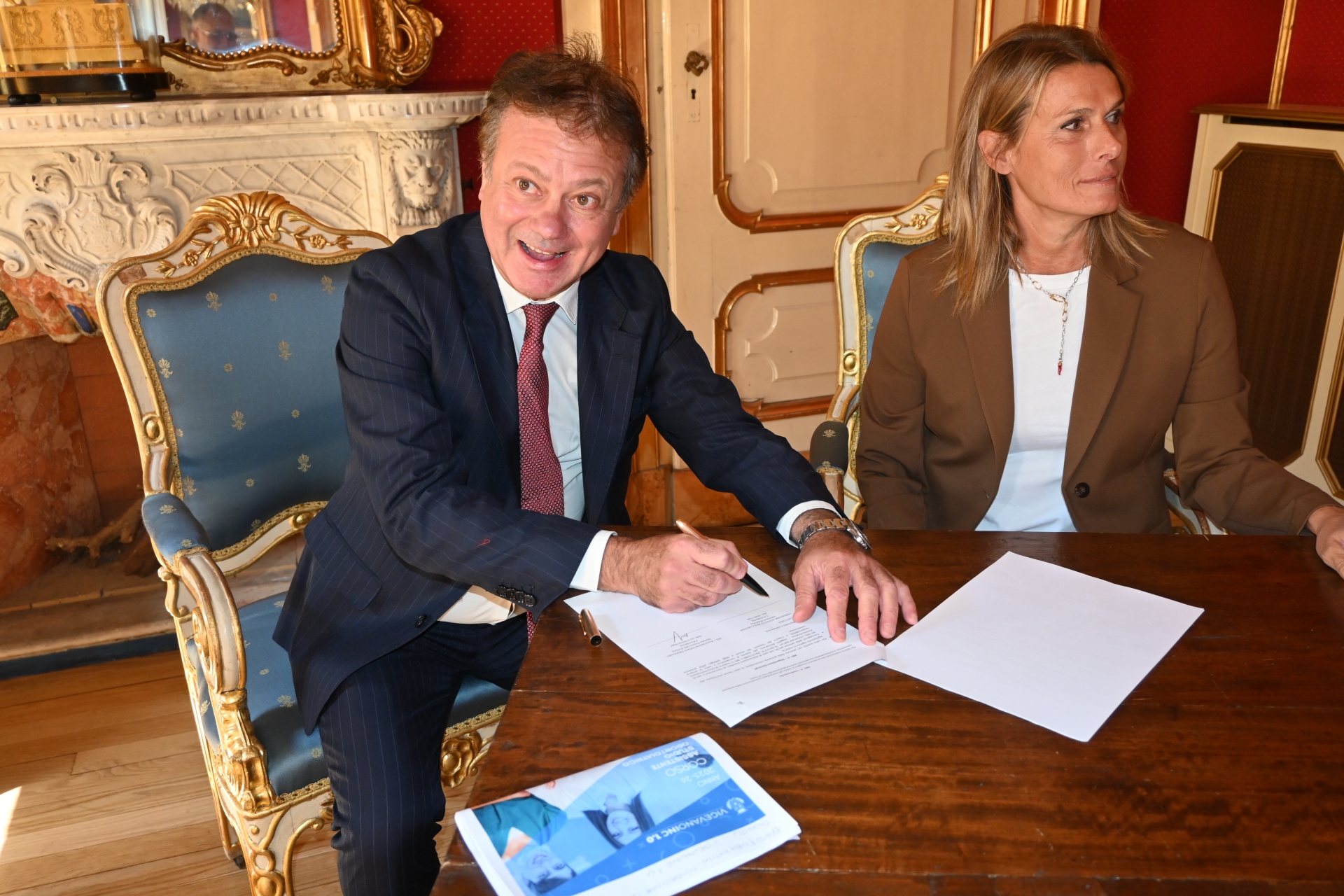 Giulio Colli (Roncalli) e Cristina Segù (Aio) firmano la convenzione