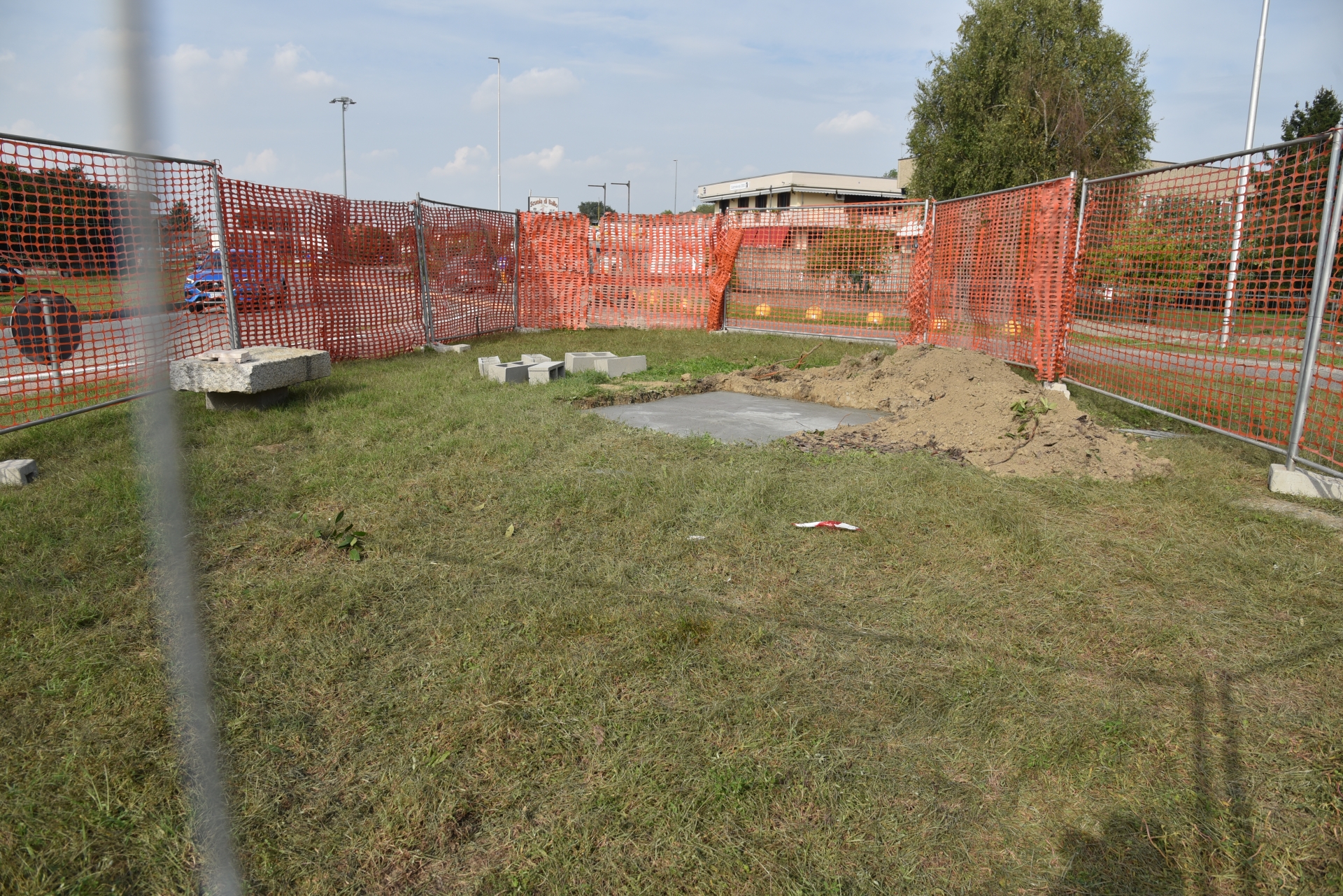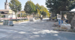 I lavori in corso per predisporre la statua sulla rotonda