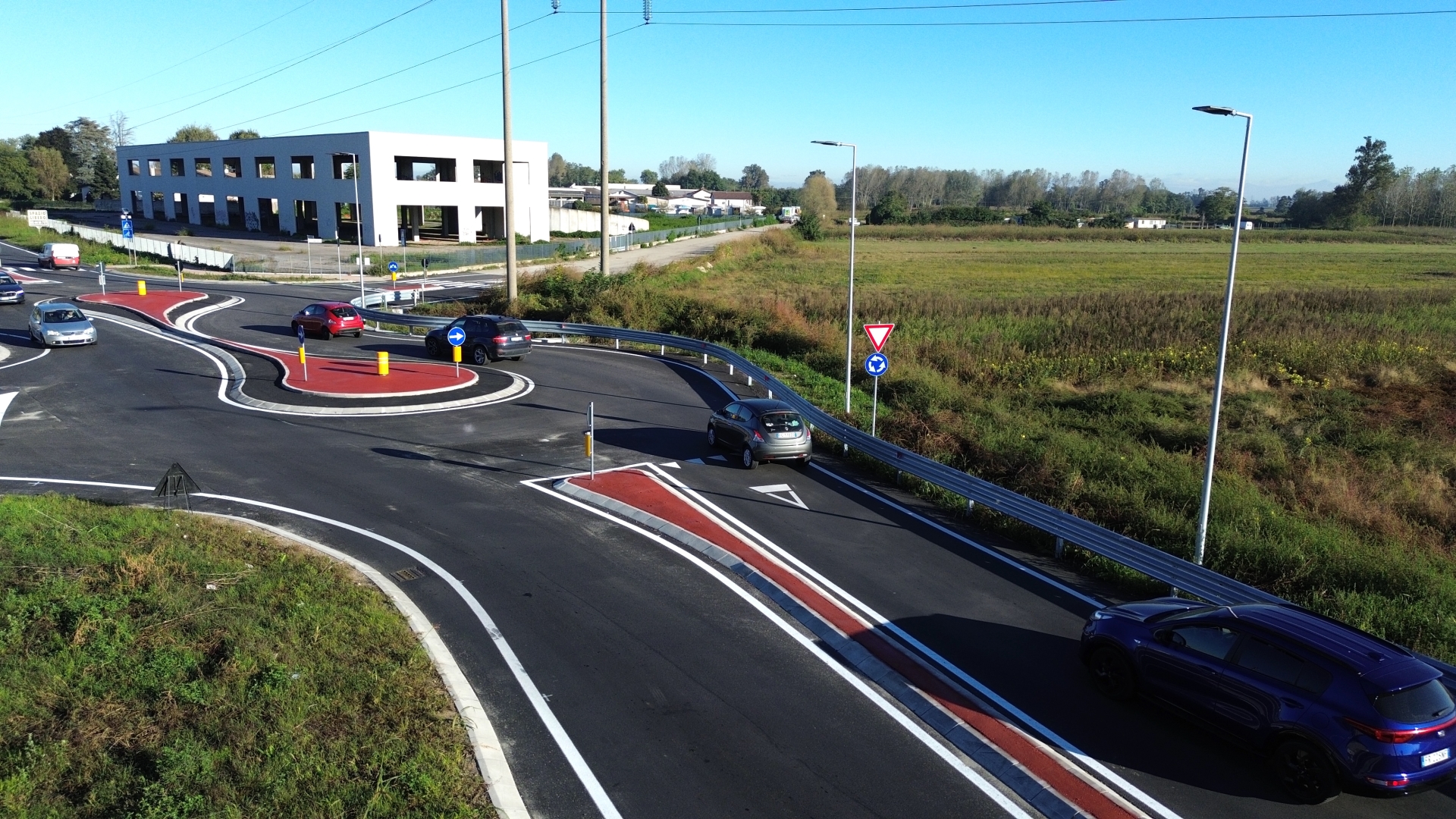 La rotonda di via Lomellina è stata realizzata per rallentare i veicoli sulla Sp 183 e per garantire un accesso sicuro per gli utenti e i mezzi diretti alla nuova isola ecologica.