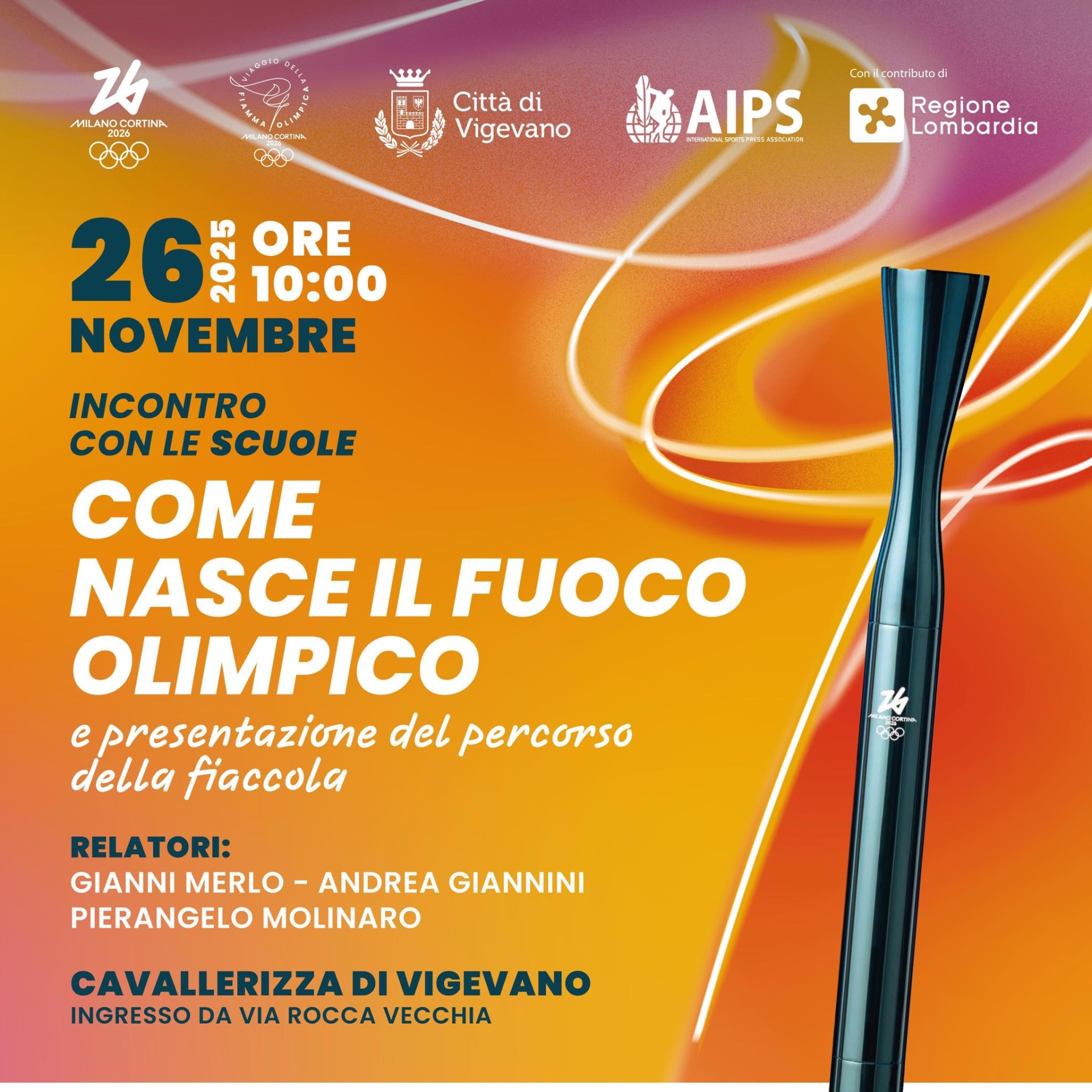Un incontro sul valore del fuoco olimpico si terrà mercoledì prossimo per le scuole nella Cavallerizza del Castello a Vigevano