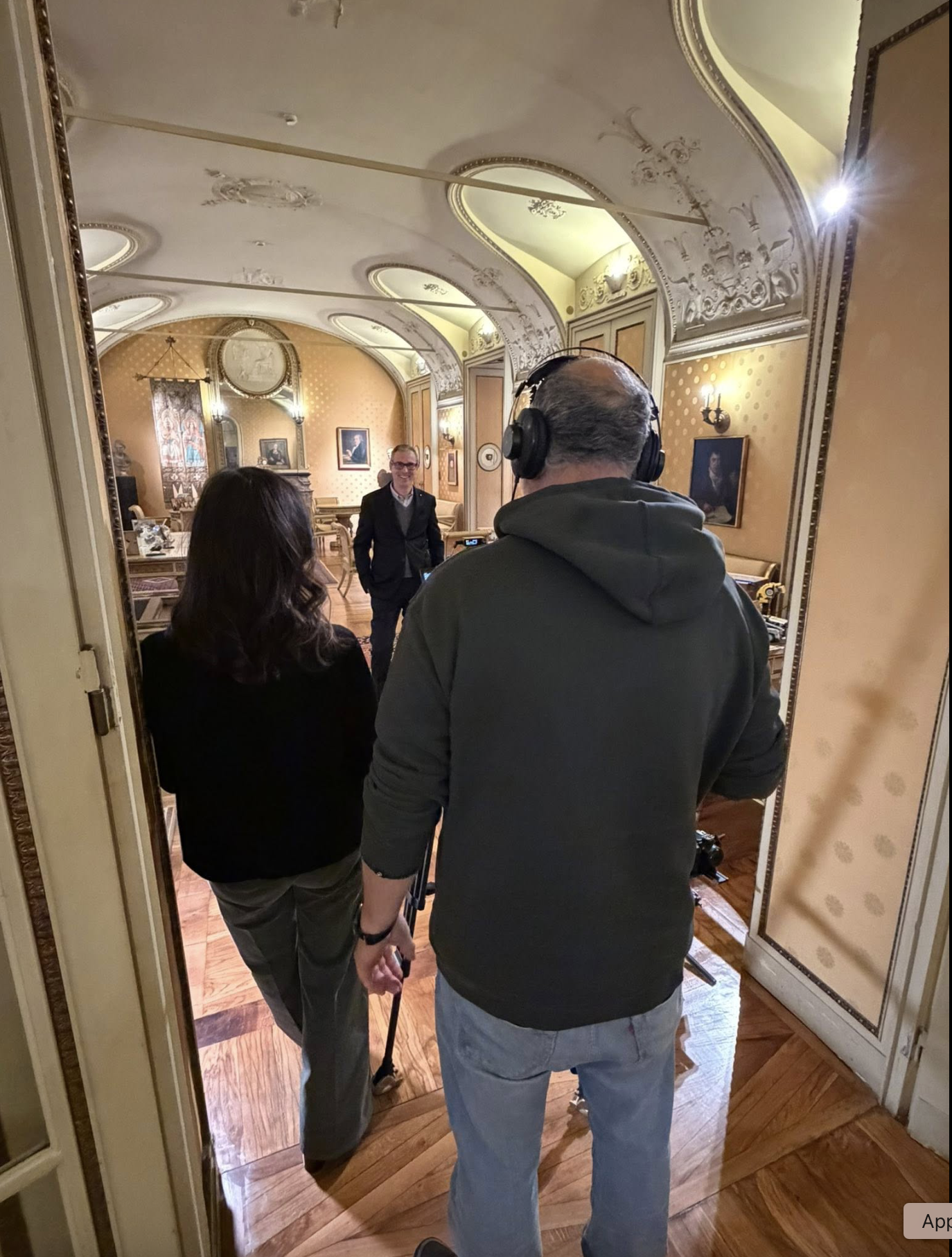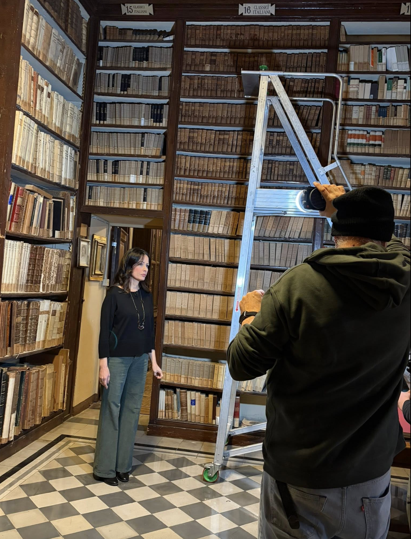 La seconda tappa ha condotto la troupe negli uffici del Rettore dell’Università, Alessandro Reali. Nel suo studio in stile impero, Reali ha ripercorso la storia di uno degli Atenei più antichi d’Europa e illustrato le prospettive internazionali di un’istituzione profondamente intrecciata con la vita della città.