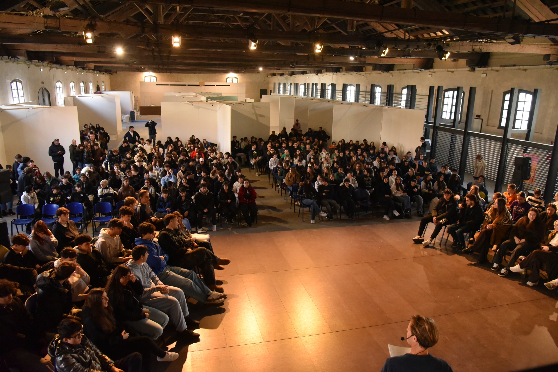 Gianni Merlo mentre parla agli studenti al convegno in Cavallerizza (foto J.Lattari)