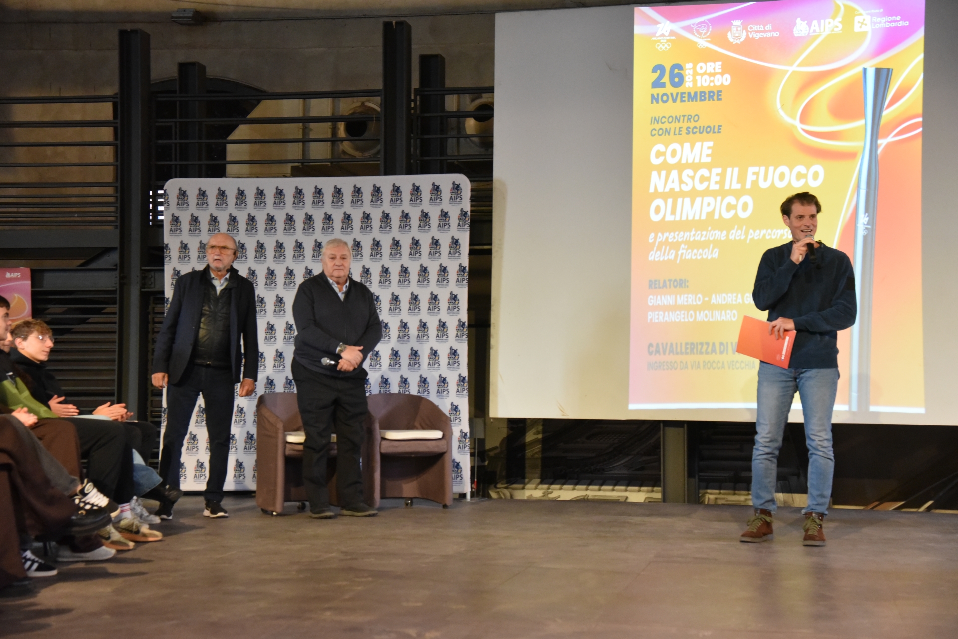 Tra i milioni di spettatori che ieri hanno assistito all’evento collegati in diretta c’erano anche circa 400 studenti delle scuole medie e superiori di Vigevano accorsi in Cavallerizza invitati dall’AIPS (Associazione Internazionale della Stampa Sportiva) presieduta dal cronista vigevanese ex inviato del quotidiano La Gazzetta dello Sport Gianni Merlo che prima ha introdotto all’evento con un breve flashback sulla nascita delle Olimpiadi invernali per rendere i ragazzi più consapevoli sul significato del fuoco olimpico assieme a Pierangelo Molinaro, vigevanese e anch'egli per inviato per anni per conto della rosea per le gare di sci.