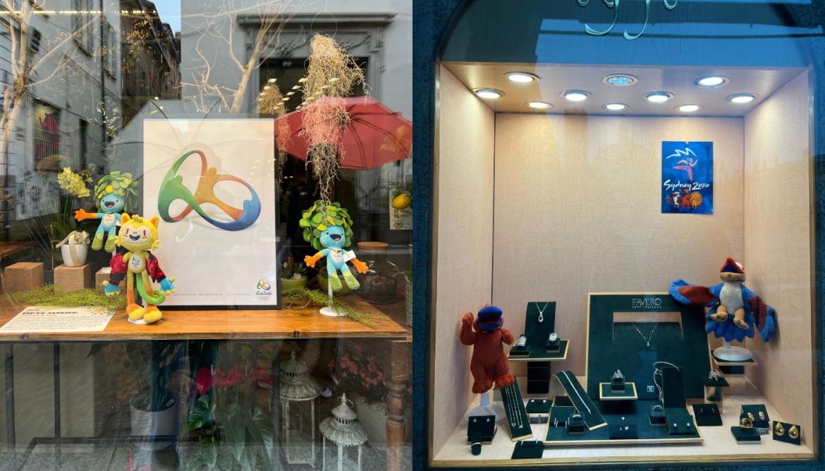 Quelle esposte sono opere che raccontano l’evoluzione dell’arte grafica e visiva delle Olimpiadi, mostrandone il passaggio da un linguaggio più classico e artistico ad uno più moderno e simbolico. A queste si affiancano le mascotte olimpiche da Monaco 1972 a quelle attuali di Milano Cortina 2026. Hanno contribuito all’allestimento delle vetrine i ragazzi di ‘Ubuntu’ il progetto sociale che vede coinvolte persone con disabilità intellettive nelle iniziative culturali e sociali della città. Le mascotte, inoltre, resteranno nelle vetrine dei negozi fino al termine delle Paralimpiadi (15 marzo).