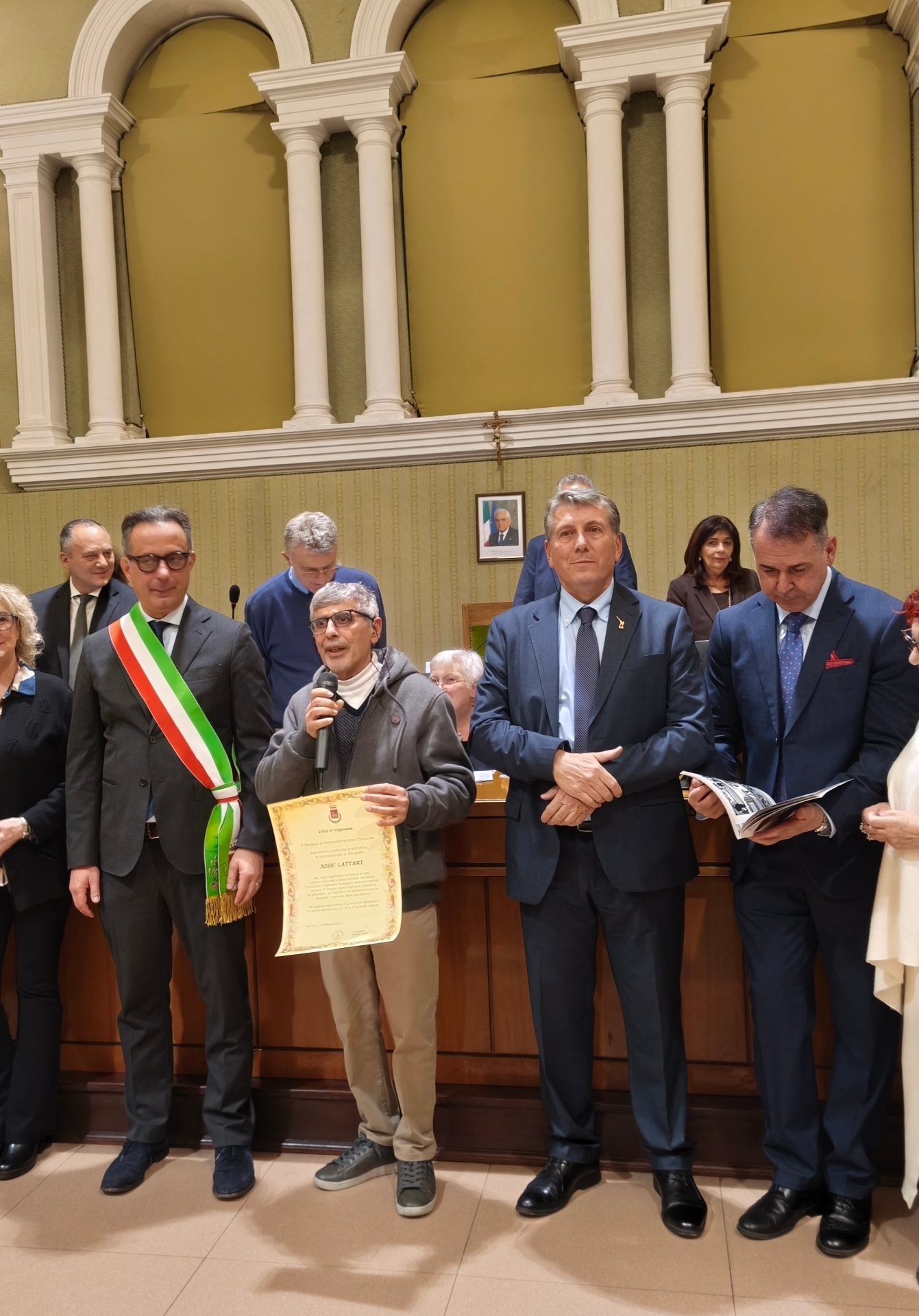 Martedì sera, nell’aula consiliare del Comune di Vigevano, poco prima dell’inizio del consiglio comunale, si è svolto un momento di grande intensità e valore simbolico per la città. L’amministrazione comunale ha infatti voluto rendere omaggio a José Lattari, fotoreporter nato a Rosario, la città più grande della provincia argentina di Santa Fe e trasferitosi in Italia negli anni Novanta. La cerimonia, semplice ma partecipata, ha rappresentato un riconoscimento pubblico al percorso umano e professionale di un artista che, con il suo obiettivo, ha saputo raccontare uno dei periodi più difficili della nostra storia recente, con il suo libro fotografico “Lockdown”, immagini della pandemia. A consegnare il premio è stato il sindaco Andrea Ceffa, insieme all'assessore Riccardo Ghia, che hanno voluto sottolineare il valore dell’opera realizzata con parole cariche di stima e riconoscenza, soprattutto per l'impegno costante e la qualità dei suoi servizi fotografici, e per aver realizzato un libro di alto valore culturale e documentale.