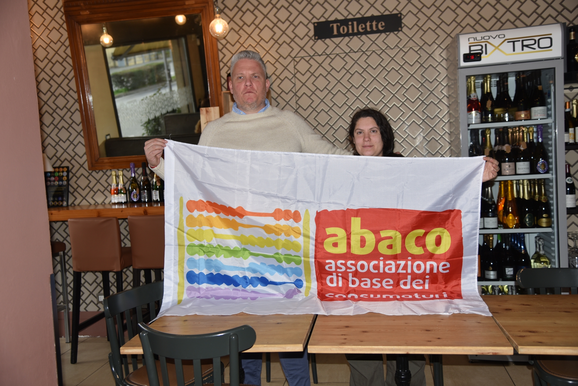 Gabriele Gabba e Elena Lott con la bandiera dell'associazione Abaco (Foto J. Lattari)