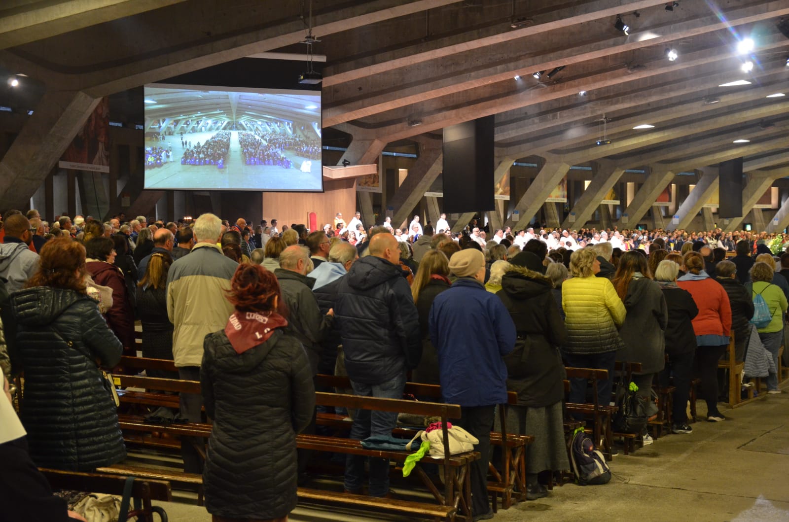 Un momento della Messa Internazionale nella Basilica ipogea di San Pio X a Lourdes (foto A. Villaraggia)