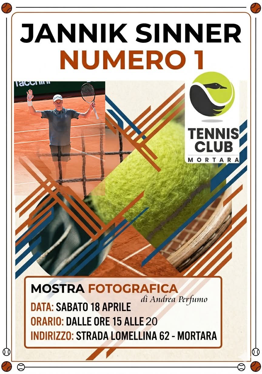 Si chiama “Jannik Sinner numero 1” la mostra fotografica allestita oggi sabato dalle 15 alle 20 nei locali del tennis club di Mortara, in via Lomellina 62. Sono 50 scatti realizzati da Andrea Perfumo, del Gruppo fotoamatori del Circolo culturale lomellino di Mortara in occasione dell’ultimo torneo Master 1000 di tennis di Montecarlo, quando l’italiano Jannik Sinner, vincendo in finale contro Alcaraz ha conquistato per la prima volta la vittoria nel torneo sulla terra rossa del Principato ed è tornato numero uno al mondo. Altri sono scatti del torneo di due anni fa, sempre su Sinner. Andrea Perfumo era presente con un pulman di mortaresi e appassionati organizzato dal tennis club mortarese presieduto da Giulio Corsico. «Eravamo lì giovedì scorso - precisa Perfumo - e per un giorno intero ho seguito Sinner e ho avuto occasione di scattare numerose immagini del nostro campione. Per questo le propongo agli appassionati nella sede del tennis». Il fotografo ipotizza: «Penso che possa essere la prima mostra fotografica in assoluto realizzata interamente sul campione altoatesino».