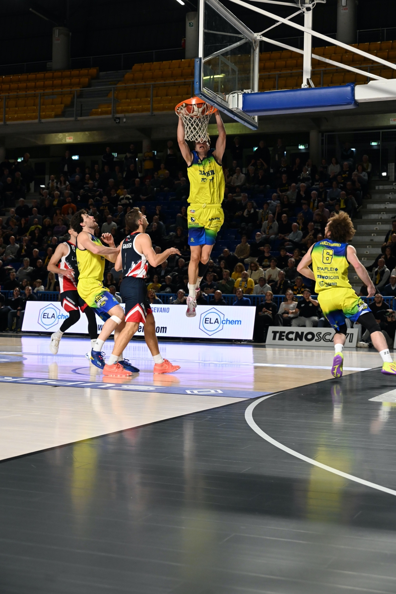 Modestas Kancleris schiaccia a canestro (foto Laura Marmonti)