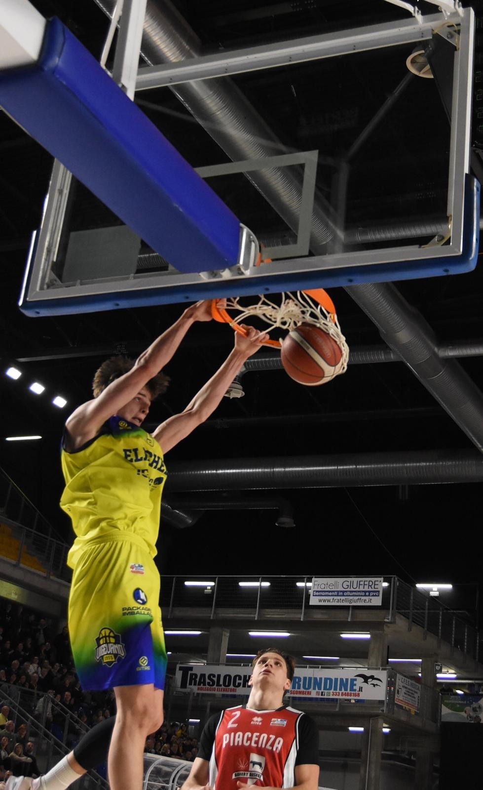 La Elachem Vigevano ritrova subito la vittoria battendo agevolmente la Bakery Piacenza (83-58) affrontata con la defezione dell'ultima ora di Matteo Corgnati per un problema ad una spalla e grazie ai 21 punti messi a segno in 25' da Modestas Kancleris, a due rimbalzi dalla doppia doppia. Per il resto, dopo un avvio "morbido" la differenza tra le due squadre emerge e per Vigevano non ci sono davvero problemi.