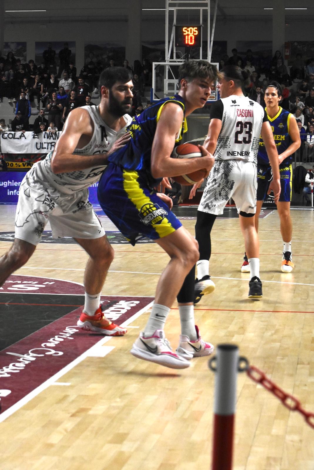 Sono di Cucchiaro, arresto e tiro dalla lunetta, i primi punti ducali del secondo quarto. Diouf pesca Corgnati per il canestro e fallo del 16-27 con 8’33”. La difesa ducale chiude tutte le porte e Omegna trova a 6’ abbondanti dalla sosta lunga il primo canestro dal campo (18-27). La partita sale di colpi, Zacchigna appoggia da sotto, Baldini butta il 22-29 e al riposo lungo mancano 3’37” e i piemontesi sono 0/10 da 3 punti. Ma si continua a segnare con il contagocce: quando mancano 79” alla pausa il punteggio è 26-33. A 36”, con Omegna che torna a uomo c’è la tripla di Fantoma. A 4” arriva l’antisportivo di Antelli su Boglio: il capitano segna un solo libero ma con meno di 2” arriva la tripla di Zacchigna per il 28-40 del 20’.