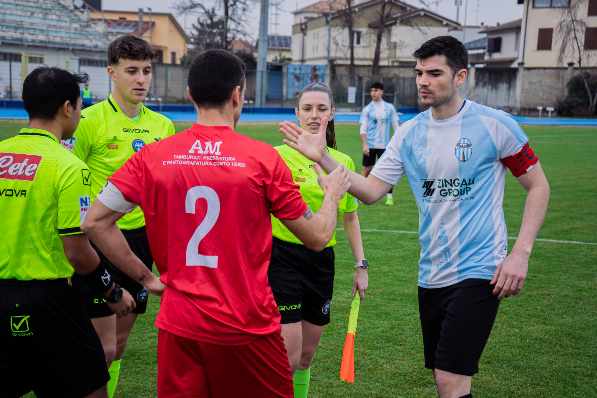 Capitan Granziera durante i saluti del pre partita (foto Vigevano Calcio)