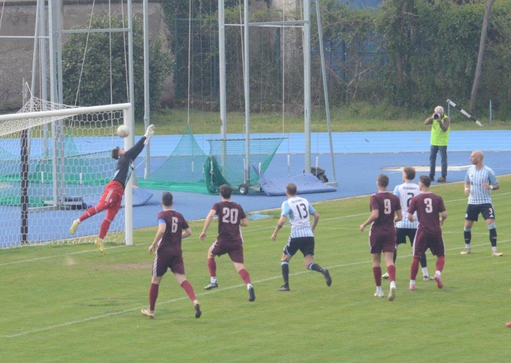 Todesco battuto dalla punizione capolavoro di Terrani (foto Paolo Marinoni)