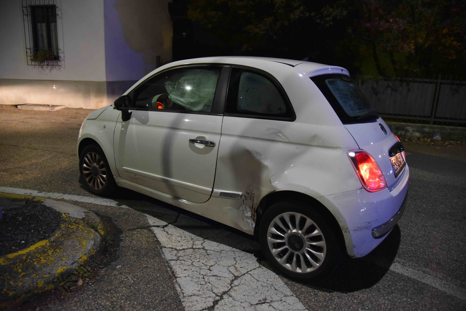La Fiat 500 ha subito l'impatto nella parte sinistra, vicino alla ruota posteriore