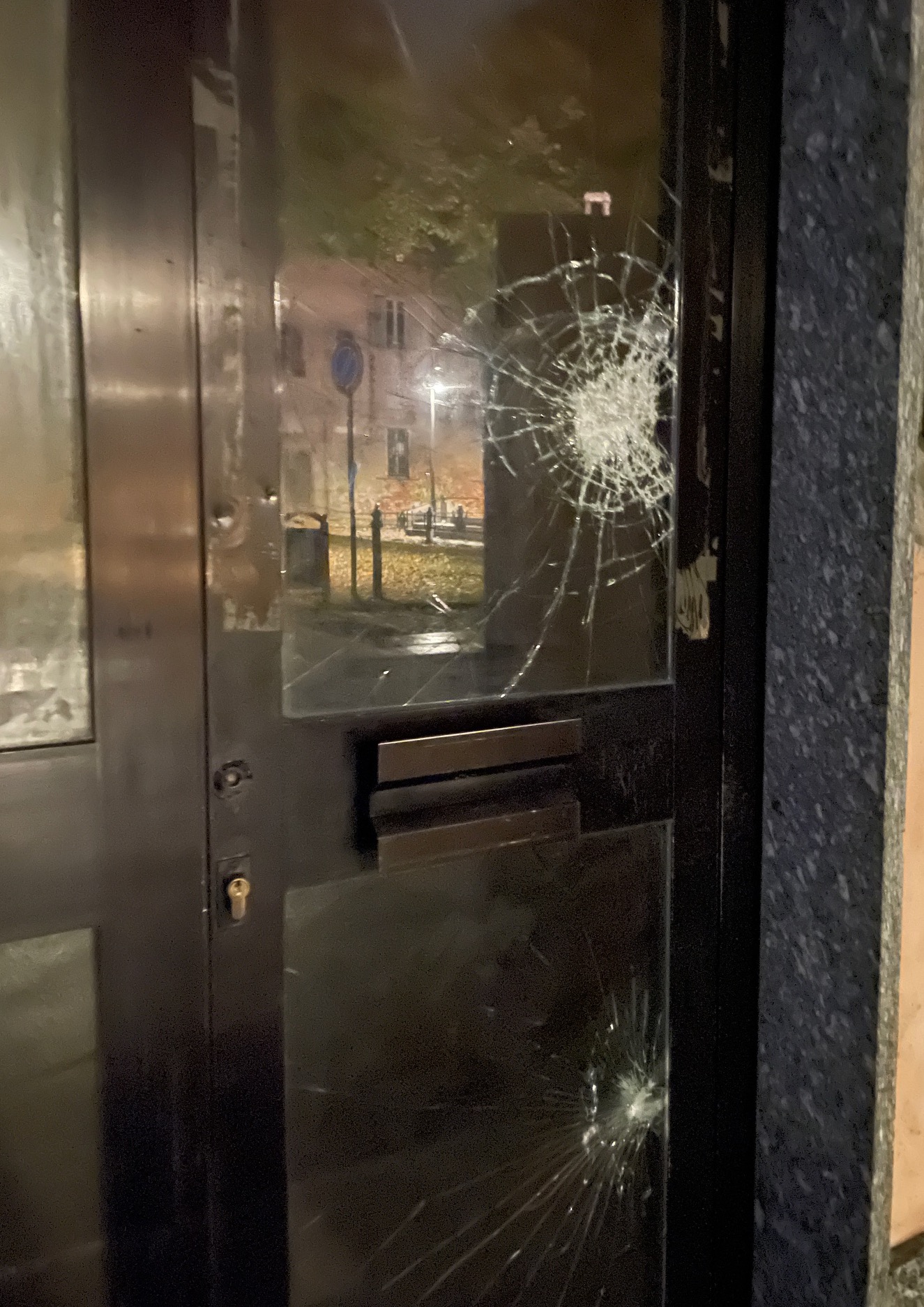 Il vandalismo alla porta d'ingresso di un condominio che si affaccia su piazza Carlo Alberto