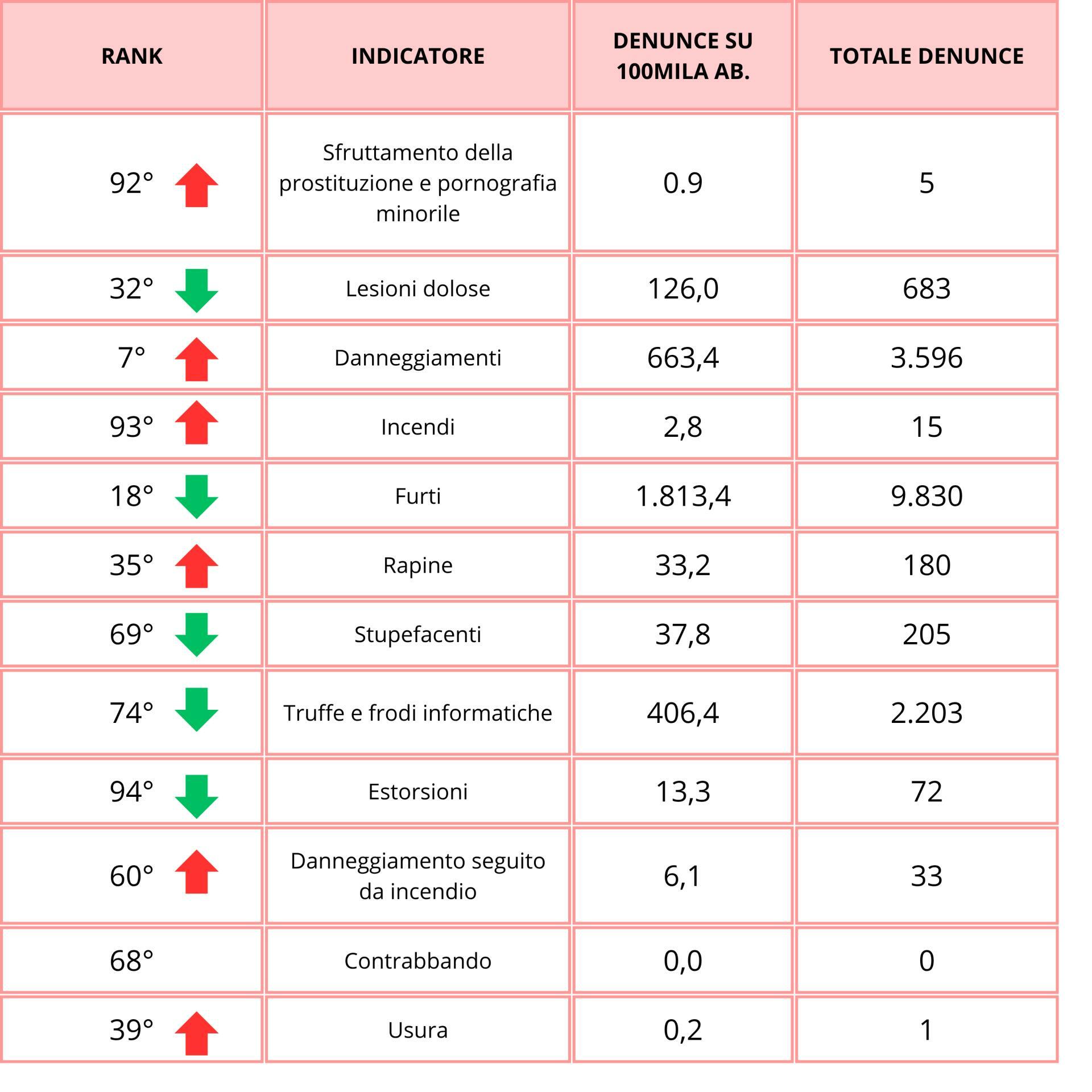 Nel complesso, l’area metropolitana di Milano continua a guidare la classifica, pur segnando un leggero calo dei reati del 2%. Il tasso sfiora i 7.000 illeciti ogni 100mila abitanti, con 225.786 denunce in dodici mesi, in media 618 al giorno. Come sottolinea il quotidiano economico, la criminalità nel capoluogo lombardo è tornata ai livelli del 2018, ma resta ben al di sotto dei picchi registrati tra il 2006 e il 2014.