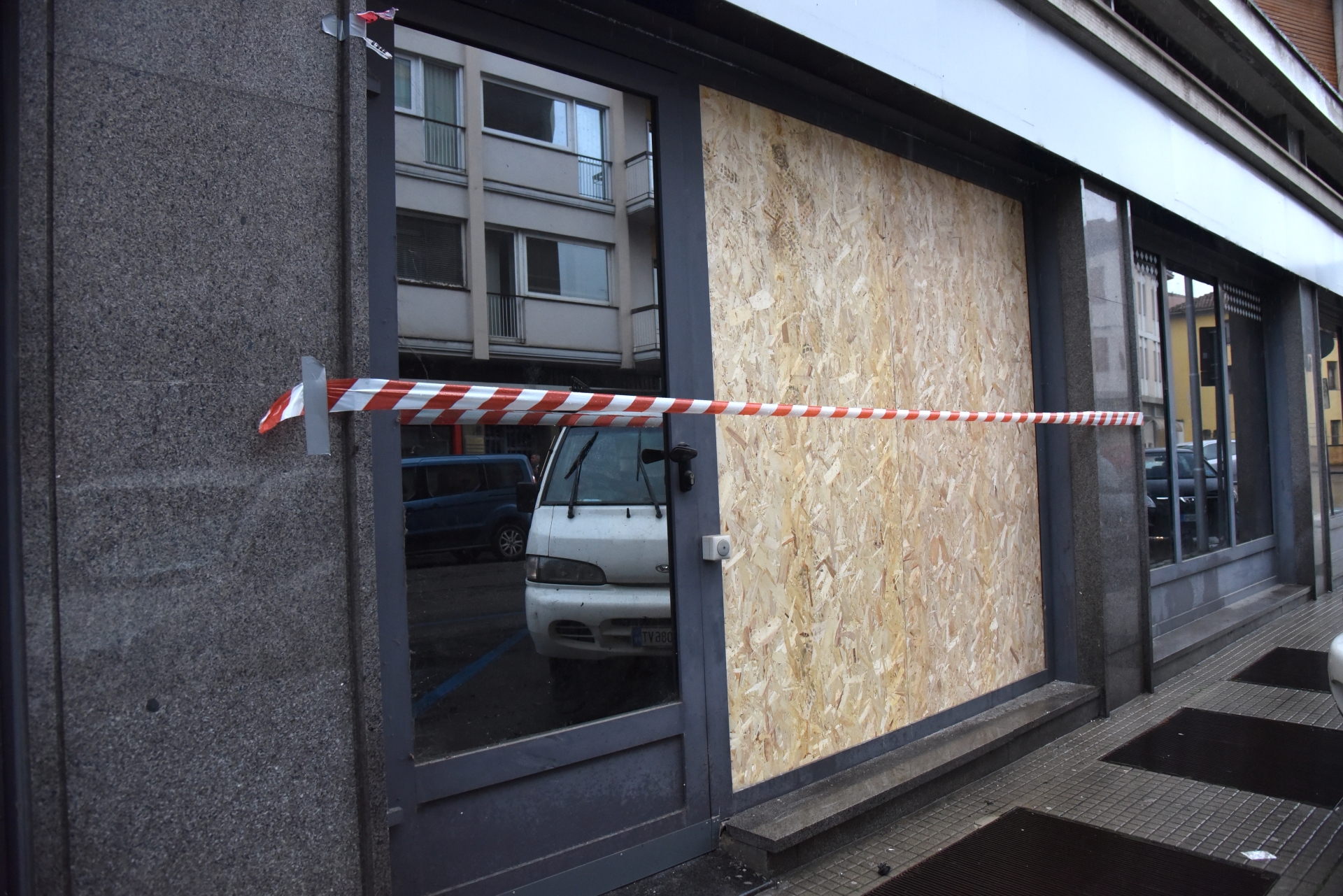 La vetrina è stata messa in sicurezza con il posizionamento di un pannello di copertura (foto di Jose Lattari)