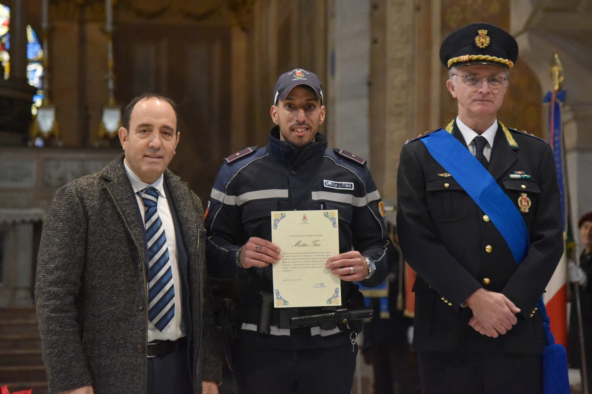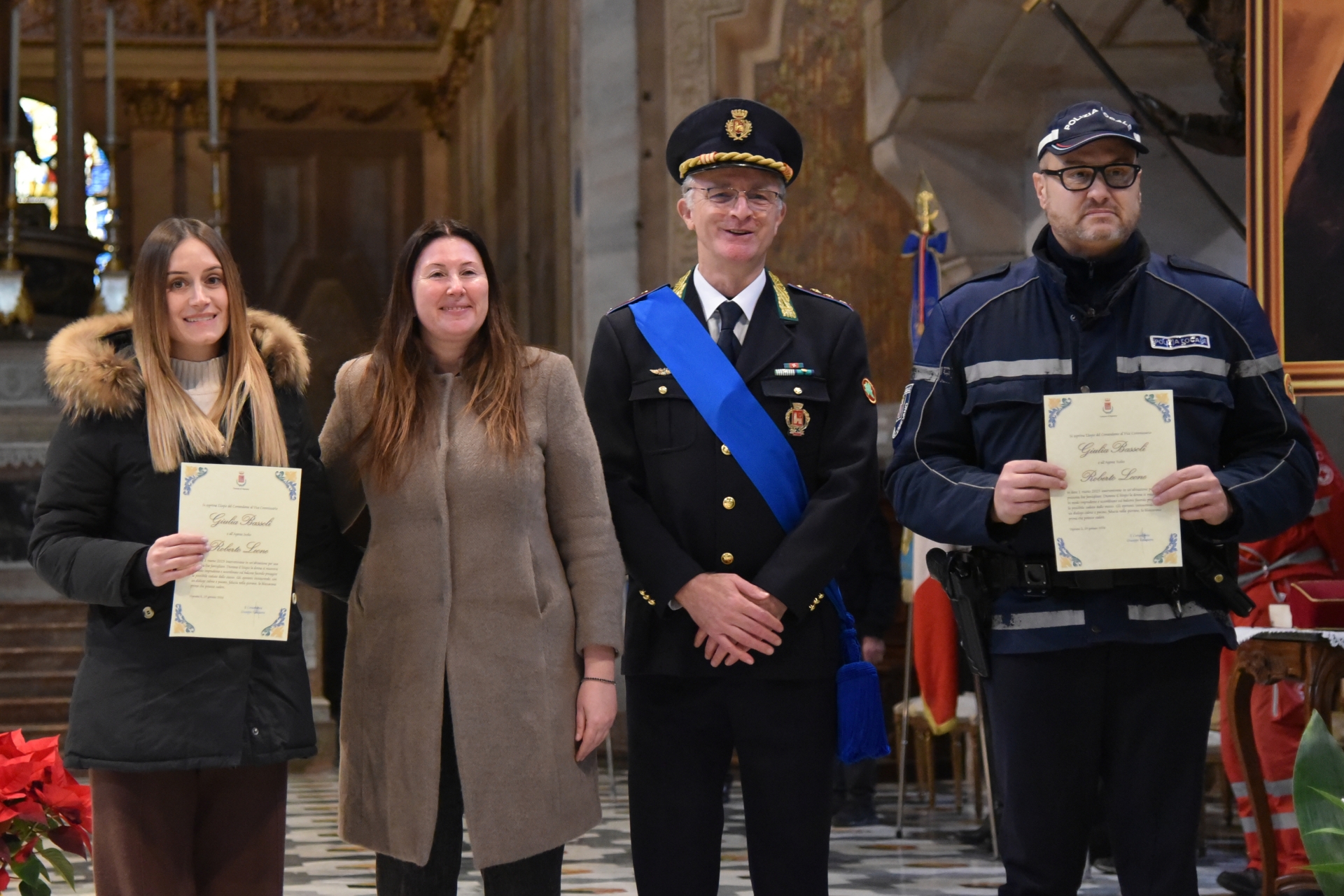 Si è tenuta questa mattina, lunedì 19 gennaio, in Duomo a Vigevano, la festa per San Sebastiano, il patrono della polizia locale. La cerimonia religiosa è stata presieduta dal vescovo Maurizio Gervasoni e, al termine, il Comandante della polizia locale Giuseppe Calcaterra ha premiato gli agenti e gli ufficiali che si sono distinti per meriti di servizio. Ecco chi sono.