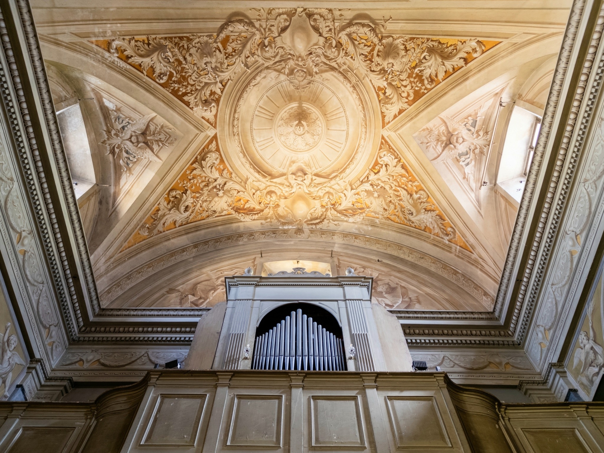 Maria Cecilia Farina alla consolle del più antico organo della città, il Rondìni-Serassi risalente al 1678 conservato nella chiesa della Madonna degli Angeli (dietro ai Frati), da poco nuova sede dell’Associazione Cantica Organi. L’evento sarà dedicato al ricordo dell’avvocato Peppino Giglia, per molti anni benefattore e presidente onorario della medesima.
