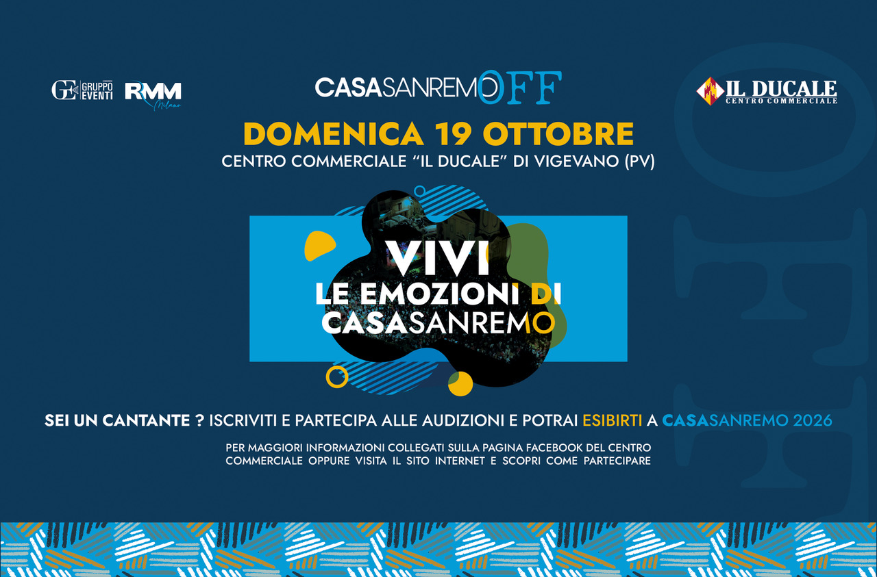 Il sogno di calcare i palchi di Sanremo può partire da Vigevano. Domenica 19 ottobre 2025, infatti, il Centro Commerciale Il Ducale diventerà il palcoscenico delle audizioni di Casa Sanremo OFF, il format nazionale che attraversa l’Italia alla ricerca di talenti emergenti della musica.
