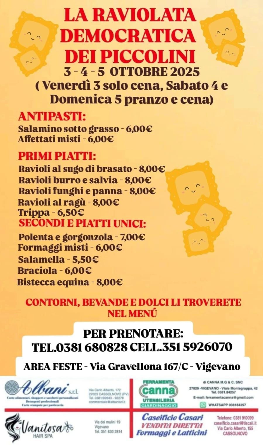 Chiamarla solo “Raviolata” forse è improprio, perché quella benemerita associazione che la organizzava non c’è più. Però è come se lo fosse, perché il menù è quasi tutto a base di pasta ripiena. Il luogo per gustarli è il parco Berlinguer di via Gravellona.