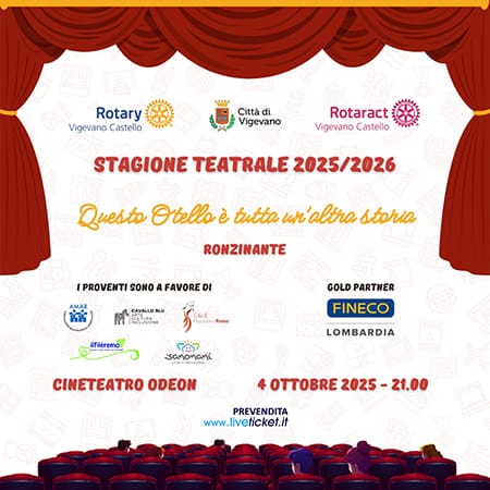 L’ispirazione, molto libera, è evidente: Shakespeare. Ma “Questo Otello è tutta un’altra storia”, come chiarisce il titolo dello spettacolo che andrà in scena sabato 4 ottobre alle 21 sul palco del cine-teatro Odeon. Scritto da Andrea Motta, con Matteo Apicella, Francesca Gariboldi, Antonio Takhim, è diretto dalla compagnia Ronzinante. L’intento è benefico: grazie al Rotary club Vigevano Castello, che organizza la stagione all’Odeon con dieci date (questa è la prima), il ricavato verrà devoluto in beneficenza per le associazioni Amar, Cavallo Blu, Pesciolino Rosso, Il Filéremo, Sanonani.