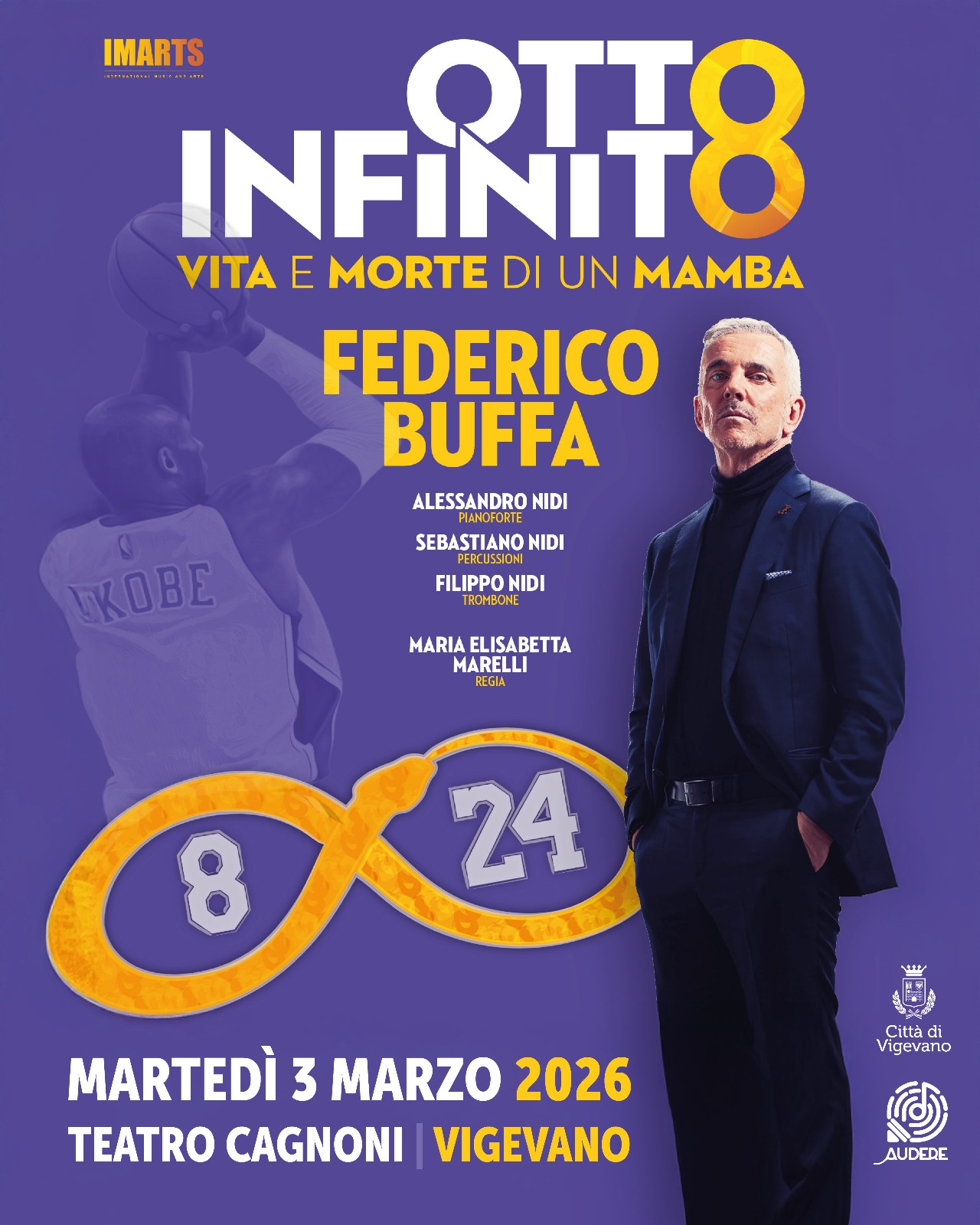 Il fascino dello sport, la potenza della parola e la musica dal vivo si incontrano al Teatro Cagnoni di Vigevano martedì 3 marzo 2026, quando Federico Buffa porterà in scena “OttoInfinito – Vita e morte di un Mamba”, uno spettacolo dedicato a Kobe Bryant, una delle icone più amate e influenti della storia del basket mondiale.