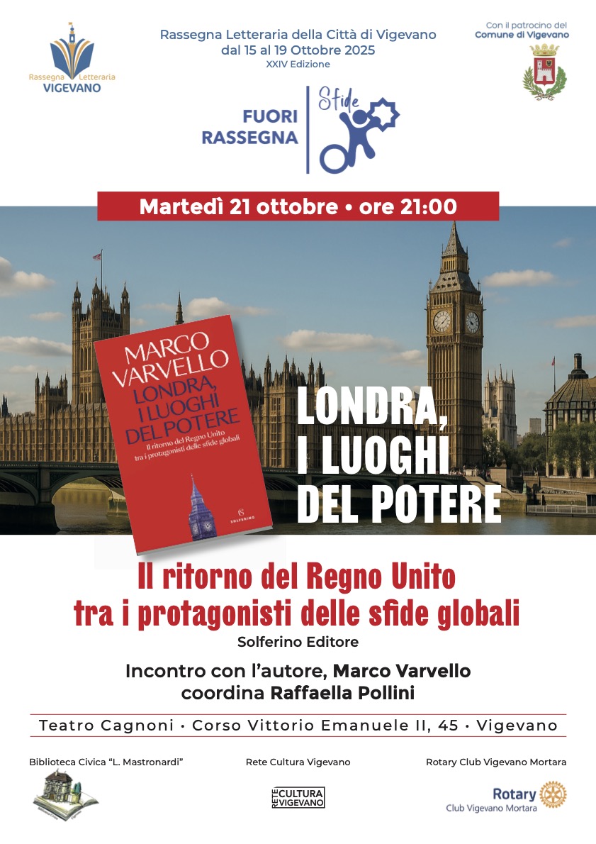Un viaggio tra le stanze dove si decide il futuro della Gran Bretagna e, inevitabilmente, quello dell’Europa intera. Martedì 21 ottobre alle ore 21 il Teatro Cagnoni di Vigevano ospiterà l’incontro “Londra, i luoghi del potere”, con Marco Varvello, autore del libro edito da Solferino, e Raffaella Pollini, giornalista che dialogherà con lui sul palco.