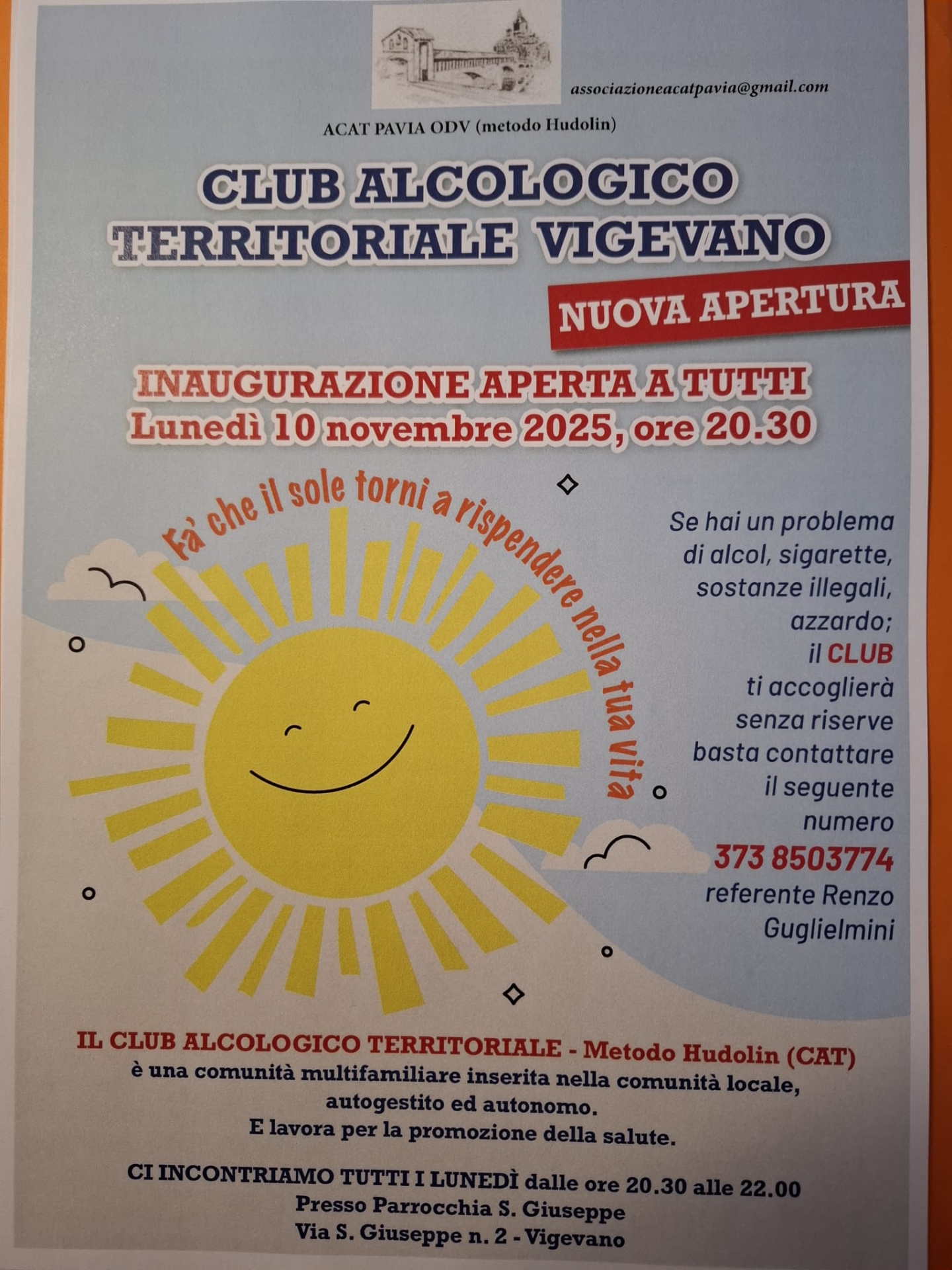 Chiunque verrebbe accolto, senza riserve, se volesse lasciarsi alle spalle l’incubo della dipendenza da alcol, da sigarette, da droghe, da gioco d’azzardo. Riprende a Vigevano un servizio fondamentale, che la pandemia aveva spazzato via: torna, infatti, il Club alcologico territoriale. Inaugurerà lunedì 10 novembre alle 20,30 presso la parrocchia San Giuseppe al Cascame grazie al parroco, don Paolo Nagari, che ha messo a disposizione gli spazi. Poi si andrà avanti con gli incontri ogni lunedì sera, sempre a quell’orario, per circa un’ora e mezza. Tutto è possibile grazie all’Acat Pavia, acronimo di Associazione Club Alcologici Territoriali. In Lomellina l’unico altro presidio è a Mede. Il referente è Renzo Guglielmini, servitore insegnante con una lunghissima esperienza.
