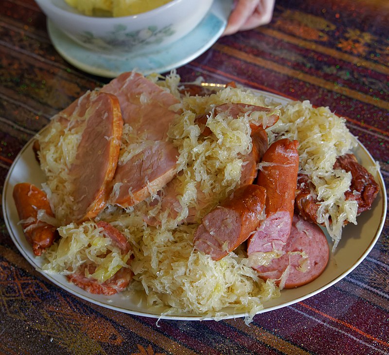 A veder da lontano sembra davvero che stiano facendo la pizza: impasto, ingredienti crudi posati sopra e poi tutto in forno per una manciata di secondi. Questa lontana cugina del vanto italiano si chiama “tarte flambée” o “flammkuchen”, nel solito bilinguismo. La versione base prevede panna acida, cipolle e lardo, ma ognuno la condisce come vuole. Com’è? Francamente buona. Se si ha fame se ne mangiano anche due. Poi c’è la choucroute. Crauti con würstel. La versione da passeggio degli ambulanti delude, perché col pretesto di «non farti sporcare le mani» (ma chisseneimporta...) la servono con la carne tagliata piccolissima. Quasi non esiste. Molto meglio sedersi in una delle tante taverne e ordinarla lì, coi pezzi belli grossi che la fanno sembrare una vera e propria cassoeula, ma coi crauti, accompagnandola a un bicchiere di traminer e al munster, il formaggio locale, come un brie ma più gustoso.