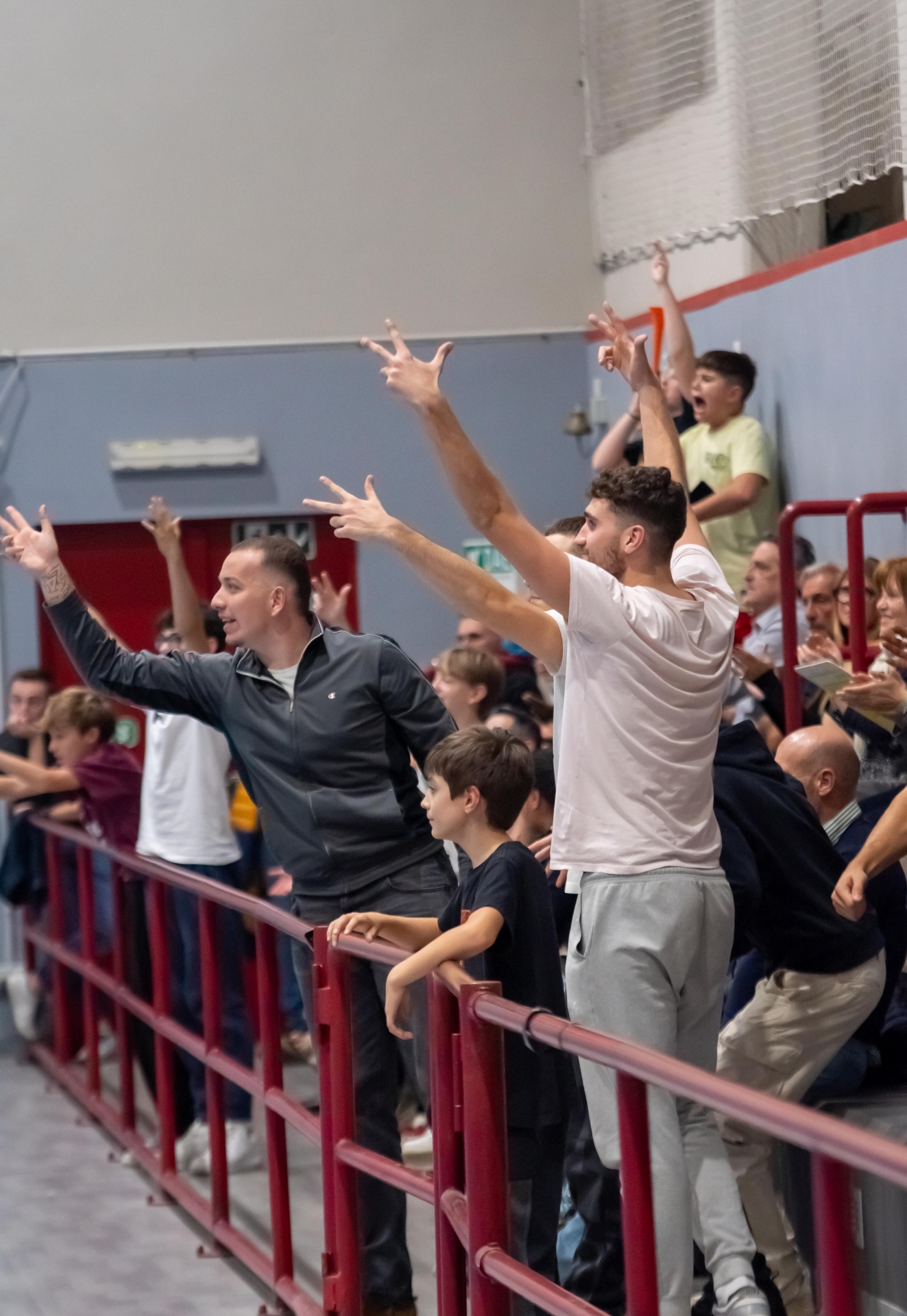 Il pubblico di Tromello esulta a una tripla dei Mosquitos (foto L. Moltrasio)
