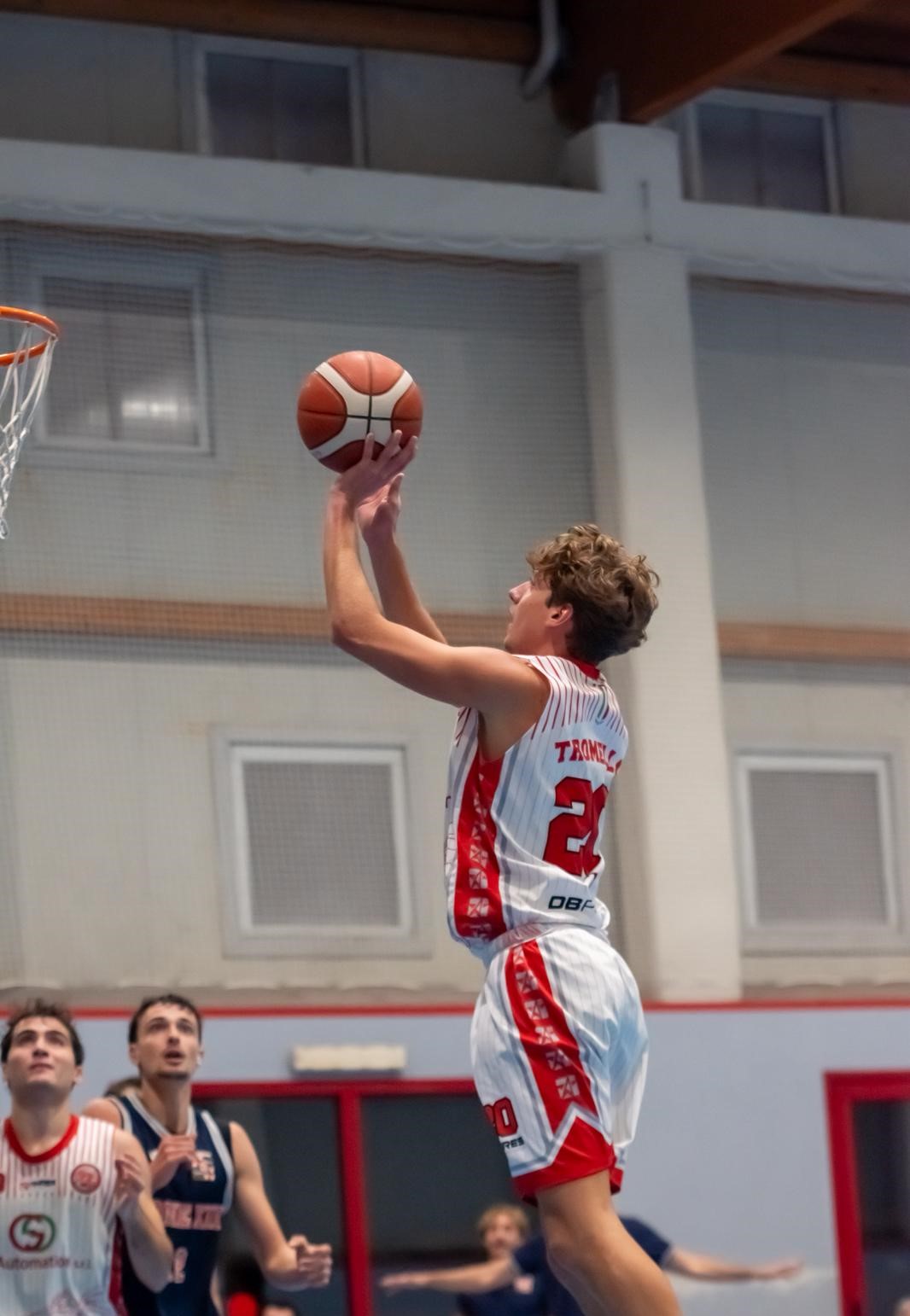 Ceretti a canestro. Il 24 di Tromello ha sopperito all'assenza di Zonca (foto L.Moltrasio)