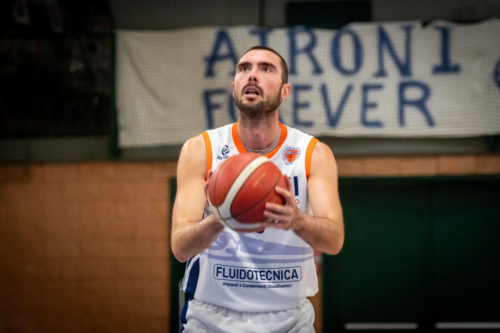 Matteo Giovara al tiro. L'esterno canavesano è stato best scorer con 22 punti (foto A. Cislaghi)