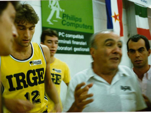 Romano Petitti (primo a destra) assistente di Dido Guerrieri a Desio nella stagione 1988-89, quando la società brianzola raggiunse lo storico traguardo della promozione in Serie A1