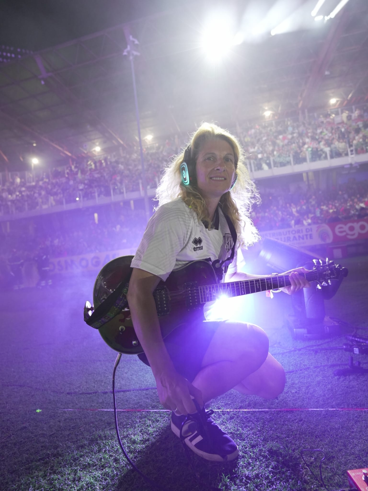 Seconda esperienza al Rockin’1000 – il concerto della band più grande del mondo – per la vicesindaca di Garlasco Isabella Panzarasa. Dopo Roma nel giugno 2023, sabato scorso ha suonato la chitarra elettrica nello stadio di Cesena davanti a un pubblico di oltre 20 mila persone, insieme a un migliaio di musicisti. Guest star, i Negrita, Piero Pelù e, a sorpresa, Diodato. «Partecipano musicisti da tutto il mondo, di tutte le età – racconta Panzarasa – la più giovane aveva 7 anni, la più anziana 78. Il prossimo appuntamento, a settembre, sarà in Portogallo. Sarebbe bello fare un’esperienza all’estero».