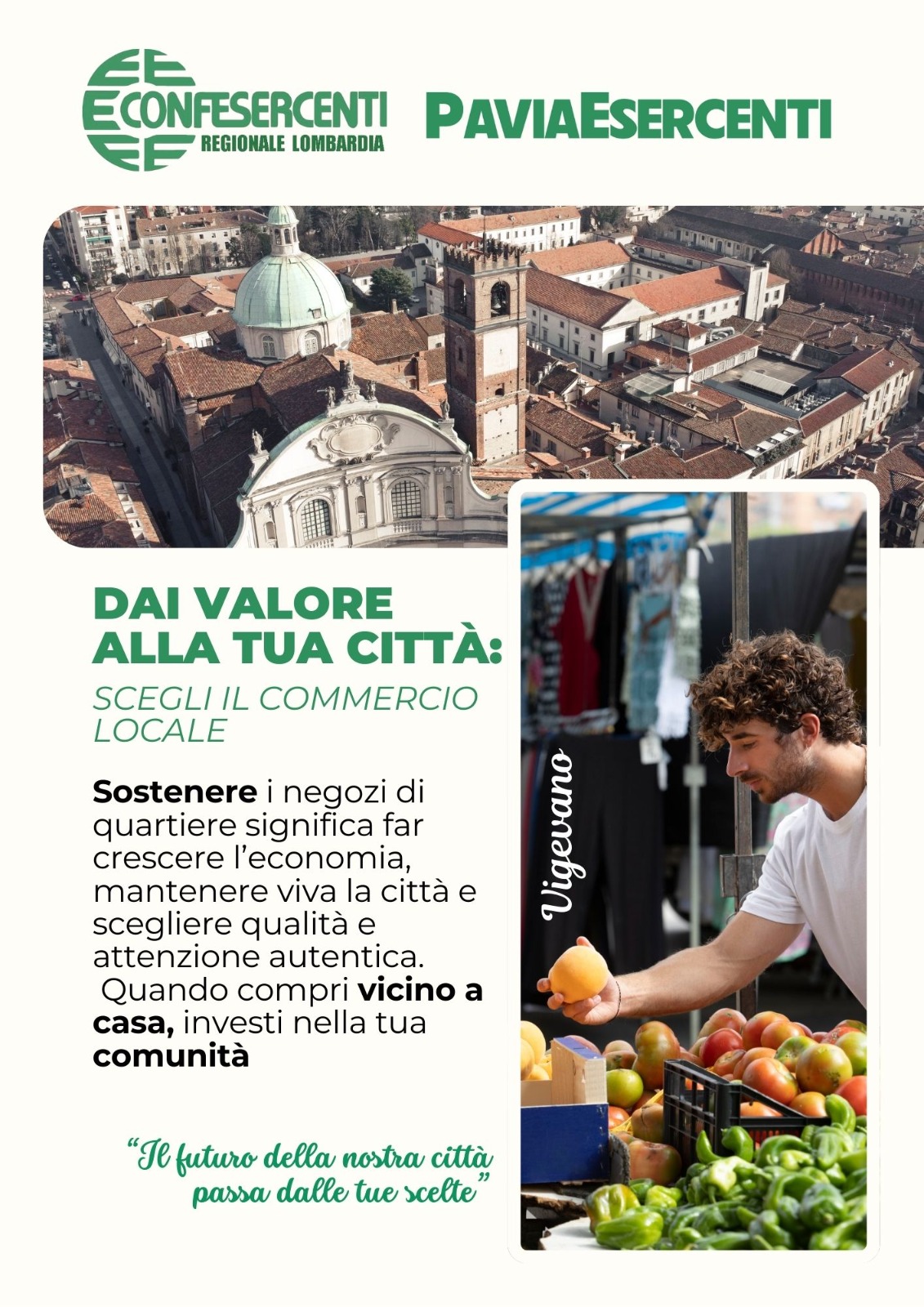 VIGEVANO - «Dai valore alla tua città: scegli il commercio locale». L’invito arriva da Confesercenti Vigevano e dal suo coordinatore cittadino, Mirko Chiera.
